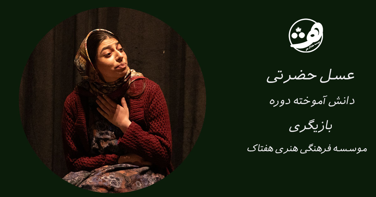عسل حضرتی دانش آموخته دوره بازیگری موسسه فرهنگی هنری هفتاک جهت تماشای تصاویر بیشتر از نمایش مرگ در پائیز با بازی عسل حضرتی کلیک فرمائید.